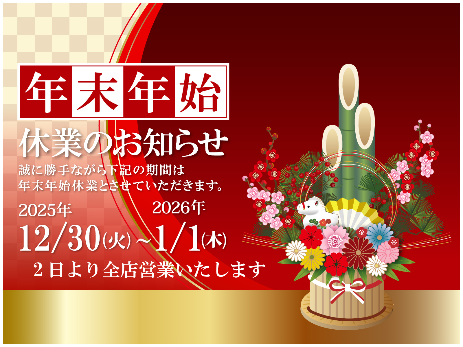 - 【営業時間】年末年始の営業について平素より龍馬家をご愛顧頂き誠にありがとうございます。年末… 続きを読む: 【営業時間】年末年始の営業について